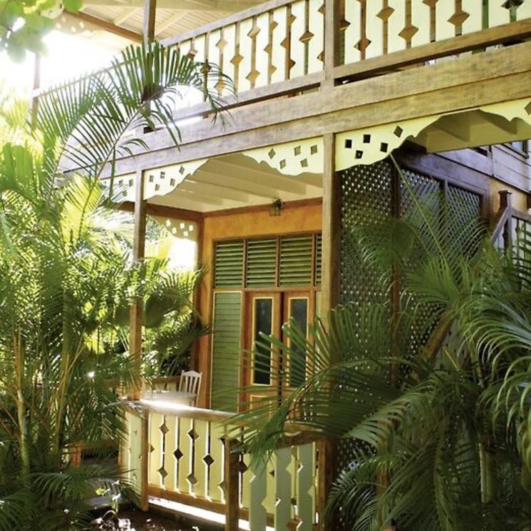 Charmante Anlage in farbenfroh-karibischem Design mit kleinem tropischem Garten. Die Gebäude und Cottages sind aus natürlichen Materialien erbaut und spiegeln pure karibische Lebensfreude wider.