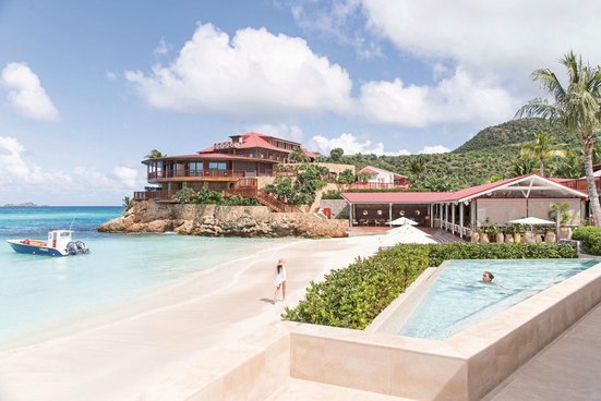 Das Hotel: Auf der kleinen Antillen Insel St. Barth liegt majestätisch auf dem Felskap “The Rock" oberhalb der feinsandigen Bucht Saint-Jean das elegante Haus der Oetker Hotel Gruppe. Das kleine Boutique-Hotel befindet sich nur ca. 10 Gehminuten von St. Jean mit seinen belebten Einkaufsgassen entfernt. Als erstes Hotel der Insel um 1950 von Rémy de Haenen erbaut, avancierte das Eden Rock bis in die 60er Jahre des 20. Jahrhunderts zum Magneten internationaler Stars und führender Dynastien wie z. B. Greta Garbo und den Rockefellers. Direkt auf dem Felsen, entlang des Strandes oder geschützt inmitten des privaten Gartens, bieten die weißgetünchten Cottages der Hotelanlage schlichte Eleganz verbunden mit luxuriös zeitlosem Design und authentisch karibischen Chic bei einmaligen Panoramablick auf das karibische Meer. Zusätzlich bietet das Hotel einen Spa, Fitnesscenter und eine Boutique. Liegen, Schirme und Badetücher am feinsandigen Strand inklusive. WLAN (ohne Gebühr). Der Flughafen von St. Barth ist ca. 2 km entfernt.