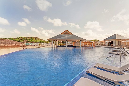 Karibischer Luxus an der Deep Bay: Erlesenes Interieur, stilvolle Zimmer, zuvorkommender Service. Noch edler geht’s zu im separaten Bereich des Diamond Club. Die Krönung: die Overwater-Bungalows!