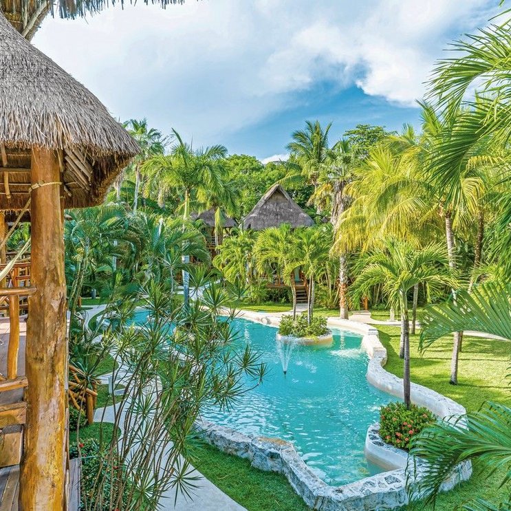 Für das echte Robinson-Crusoe-Gefühl sorgt die Palapa-Bauweise der Anlage: Aus Palmenstämmen und -wedeln konstruiert, haben die hohen, luftigen Räume eine ganz individuelle Atmosphäre und einen rustikalen Charme. Die Lage in der Nähe des Zentrums von Playa del Carmen bietet Gästen die Möglichkeit, lokale Märkte, Geschäfte und das Nachtleben zu erkunden, während sie sich dennoch in einer friedlichen Strandumgebung entspannen können.