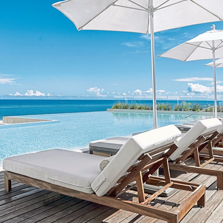 - 1 Pool: Infinity-Pool, Sonnenschirme, Liegen, Badetuch (gegen Kaution)