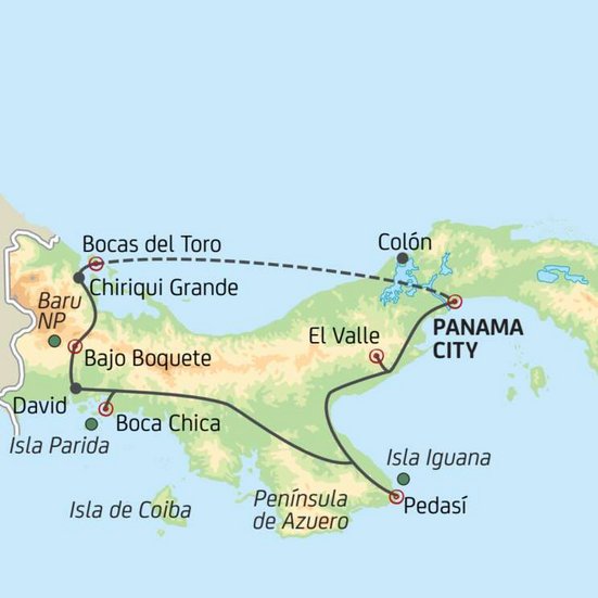 Zwischen kolonialem Charme und moderner Skyline, zwischen tropischen Stränden und grünen Bergwelten: Panama vereint Gegensätze zu einem faszinierenden Reiseerlebnis. Die Altstadt von Panama City erzählt Geschichten aus vergangenen Jahrhunderten, der berühmte Kanal beeindruckt mit seiner Ingenieurskunst. Üppige Regenwälder, idyllische Bergdörfer und einsame Inselparadiese zeigen die ganze Vielfalt des Landes. Tauchen Sie ein in die vibrierende Hauptstadt, die Meeresparadiese und die mystische Bergwelt Panamas!