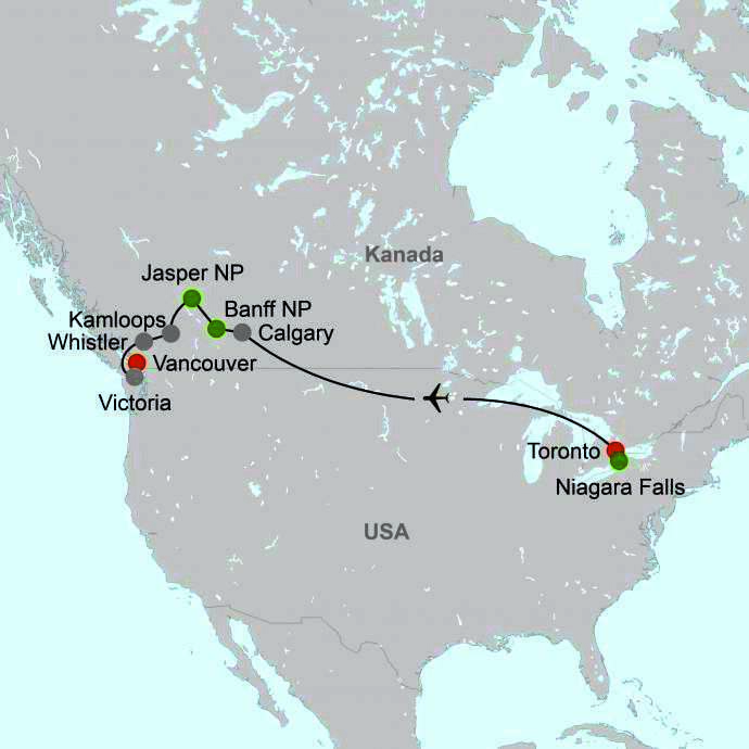 Mit den grossen Seen, der Georgian Bay und den Thousand Islands ist das Wasser in Ontario allgegenwärtig; die Provinz besitzt mit den Niagara-Fällen eines der grössten Naturwunder des Ostens. Ausgeprägte Jahreszeiten sind typisch für die Provinz Quebec: Der Winter ist kalt und schneereich, der Sommer sehr warm. Die bedeutendsten Landessprachen sind Englisch und Französisch. Zwei Drittel der Provinz sind bewaldet. Eschen, Eichen sowie Buchen inszenieren im Herbst ein herrliches Farbenmeer — den Indian Summer. Nova Scotia, Prince Edward Island, New Brunswick, Neufundland und Labrador bilden die Atlantikprovinzen. Sie sind ein ideales Ziel für alle, die eine unberührte Landschaft fernab vom grossen Rummel suchen. Der Fischfang ist der grösste Industriezweig, und wer Meeresfrüchte oder Hummer schätzt, findet hier ein wahres Paradies.
