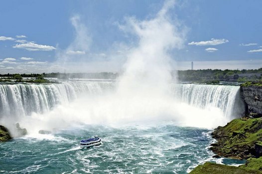(Mi) Der heutige Tagesausflug führt Sie an ein einzigartiges Naturhighlight - die Niagarafälle. Auf dem Weg dorthin besuchen Sie Niagara-on-the-Lake, das ca. 20 km flussabwärts der Fälle liegt. Das charmante kleine Städtchen bezaubert seine Besucher mit seinen historischen Sehenswürdigkeiten und gut erhaltenem viktorianischem Stadtbild. An den Fällen angekommen, fahren Sie mit Hornblower Niagara Cruises direkt an die Horseshoe Falls heran. Als krönender Abschluss könnte schließlich ein Helikopterflug oder eine Fahrt mit dem Riesenrad "Niagara SkyWheel" den Besuch der Fälle abrunden (beides fakultativ). Anschließend fahren Sie zurück nach Toronto. Ca. 260 km (F)