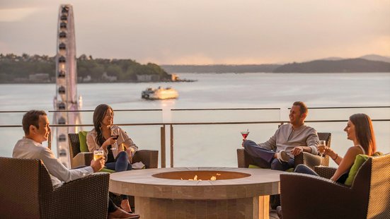 Die Zimmer: 147 modern und hell eingerichtete Zimmer und Suiten verteilen sich auf insgesamt 9 Etagen. Bodentiefe Fenster öffnen den Blick über die Stadt oder die Elliot Bay und den Puget Sound. Zur Einrichtung gehören Marmorbad mit Regendusche, Föhn, Bademantel, TV, Klimaanlage, Minibar, WLAN und Safe.