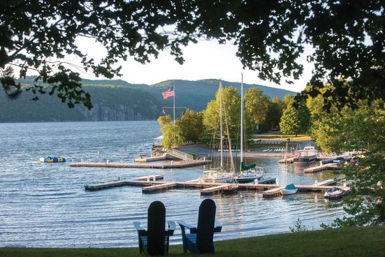 Ein Resort inmitten idyllischer Umgebung am Ufer des Lake Champlain mit komfortablen Zimmer und Cottages, die eine herrliche Aussicht auf den See, die Gärten oder den Golfplatz bieten.