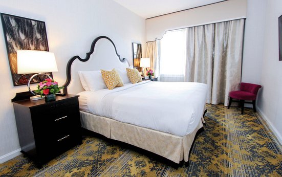- 46-50 qm, Suite, optisch getrennter Wohn-/Schlafraum, Sitzecke, Schreibtisch, Doppelbett (Kingsize), Dusche oder Badewanne, WC, Haartrockner, Klimaanlage, Mini-Kühlschrank, Bügelbrett, Bügeleisen, TV, Wasserkocher, Kaffee/Tee