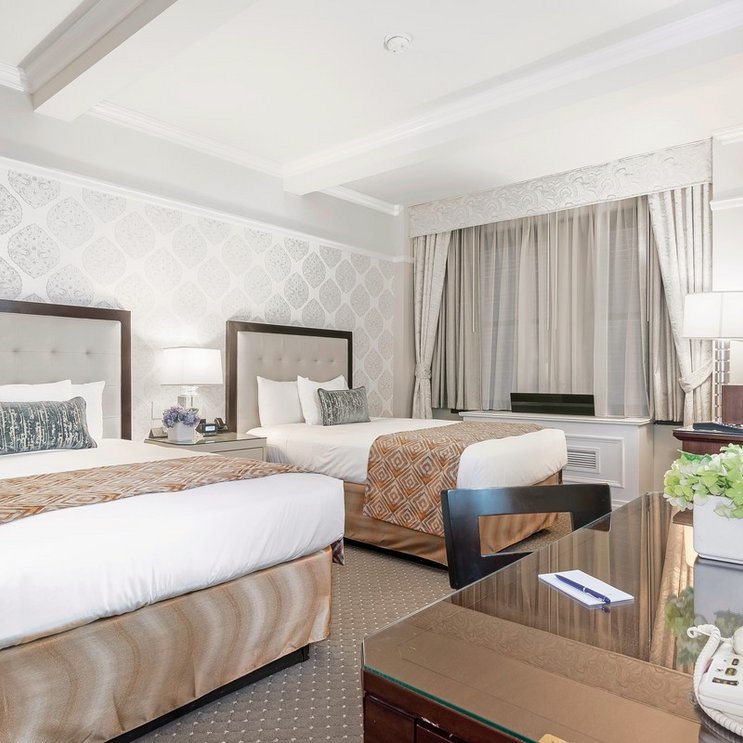 - 26-30 qm, Zweibett, Stadtblick, Schreibtisch, 2 Doppelbetten, Dusche oder Badewanne, WC, Haartrockner, Kosmetikspiegel, Klimaanlage, Minibar kostenpflichtig, Safe, Bügelbrett, Bügeleisen, TV, iPod-Dockingstation, WLAN, Wasserkocher, Kaffee/Tee, 24-h-Zimmerservice