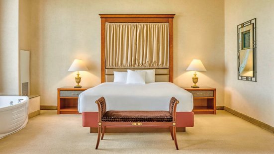 - 51-60 qm, Suite, Sitzecke, Schreibtisch, Couch, Doppelbett (Kingsize), Dusche oder Badewanne, WC, Haartrockner, Kosmetikspiegel, Klimaanlage, Mini-Kühlschrank, Safe, Bügelbrett, Bügeleisen, TV, bodentiefe Fenster