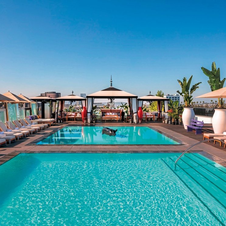 Modernes Hotel mit hippem Dekor, erstklassigem Service und einer angesagten Sundowner Dachterrasse mit Rooftop-Pool und spektakulärer Aussicht auf Beverly Hills.