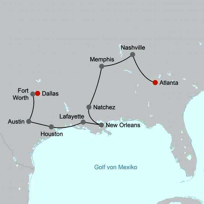 Sprache: Englisch, jedoch ist Spanisch in vielen südwestlichen Bundesstaaten und Französisch in Teilen von Louisiana verbreitet.