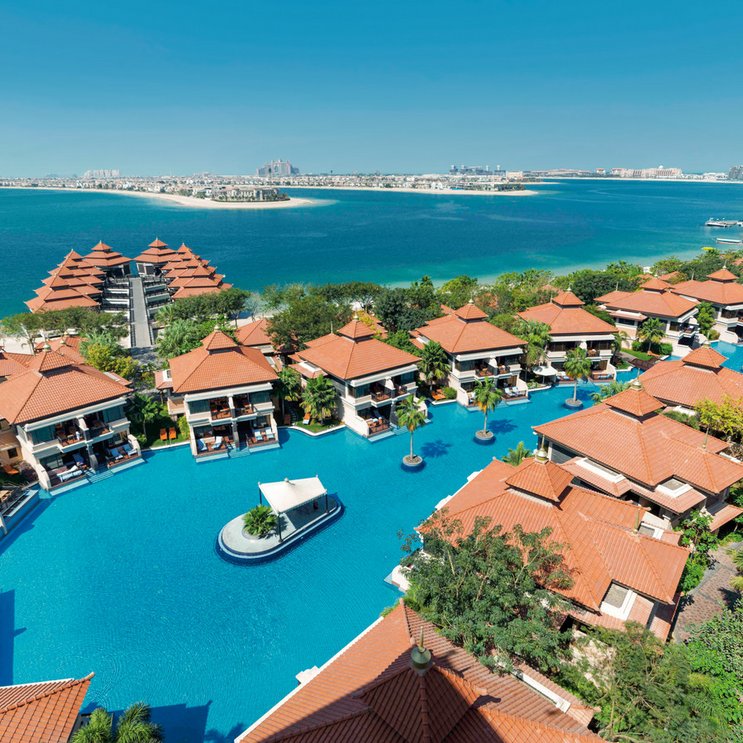 Das elegante Anantara The Palm Dubai Resort wurde mit viel Liebe zum Detail im thailändischen Stil errichtet. Vom 400 Meter langen Sandstrand haben Sie einen fantastischen Blick auf die Skyline Dubais und die künstliche Insel Palm Jumeirah.