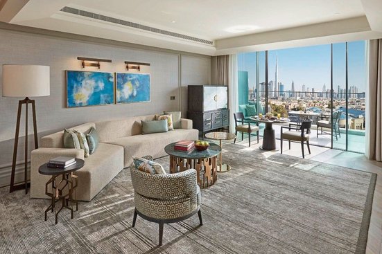 Superior Room (50) ca. 55-65 qm: Komfortables Doppelzimmer mit Blick auf die Skyline Dubais, ohne Balkon.