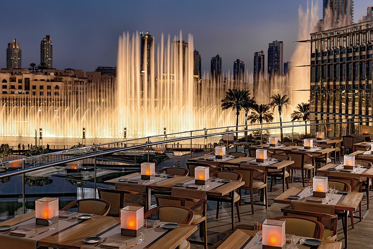 Dubai Fountain: Die grösste Wasserfontäne der Welt befindet sich direkt unterhalb des Burj Khalifa. Das Wasserspektakel mit 275 m Länge findet täglich nachmittags und abends statt. Eine weitere Attraktion ist die Bootsfahrt entlang der riesigen Fontänen.