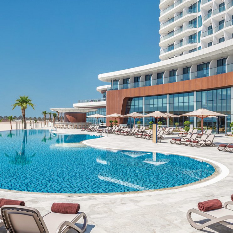 Das im Juli 2021 eröffnete Hotel der renommierten Hotelkette Hilton befindet sich auf der prestigeträchtigen künstlich angelegten Marjan Island. Der lange feinsandige Strand lädt zum Verweilen ein.