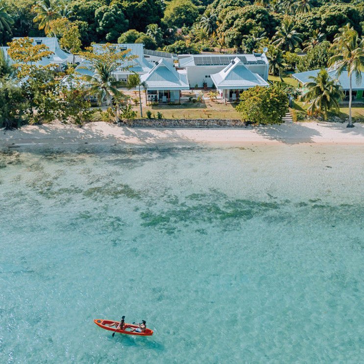 Kleine, charmante Anlage am Strand von Ha'apiti, einem der schönsten Strände der Insel. Der palmenumsäumte, weiße Sandstrand und das kristallklare Wasser laden zum Entspannen ein.