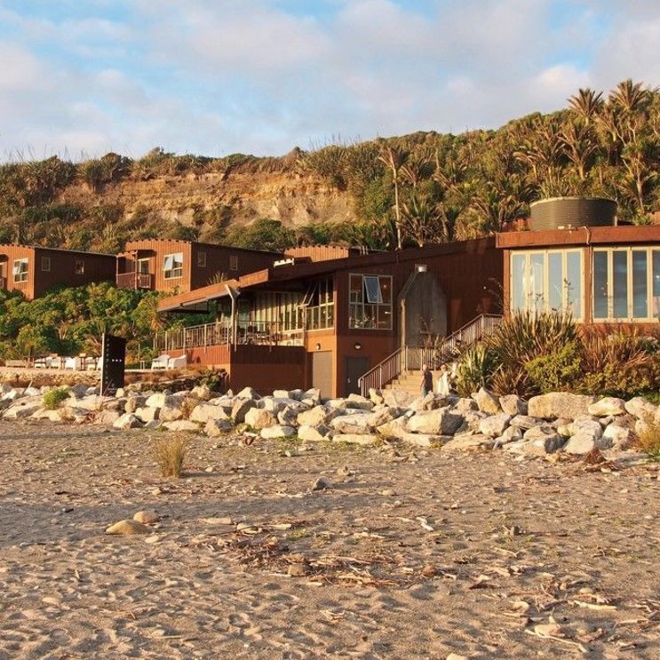 Nahe der ´Pfannkuchenfelsen´ und den ´Blow Holes Gebäude in Holzbauweise in weitläufiger Anlage