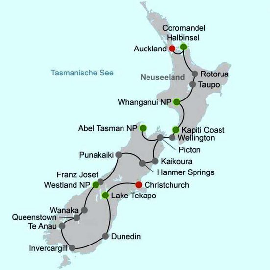 Sie fahren die Ostküste entlang, können einen Stopp am Vogelschutzgebiet am Opoutere Beach einlegen oder das Kiwi-Fruit-Centre in Te Puke besuchen (optional). Rotorua ist geprägt von der Maori Kultur. Auf dem Weg nach Taupo können Sie dem Wai-o-tapu Thermal Wonderland oder dem Waimangu Volcanic Valley einen Besuch abstatten. Eine Nacht in der Whakaipo Lodge. Ca. 270 km (F)