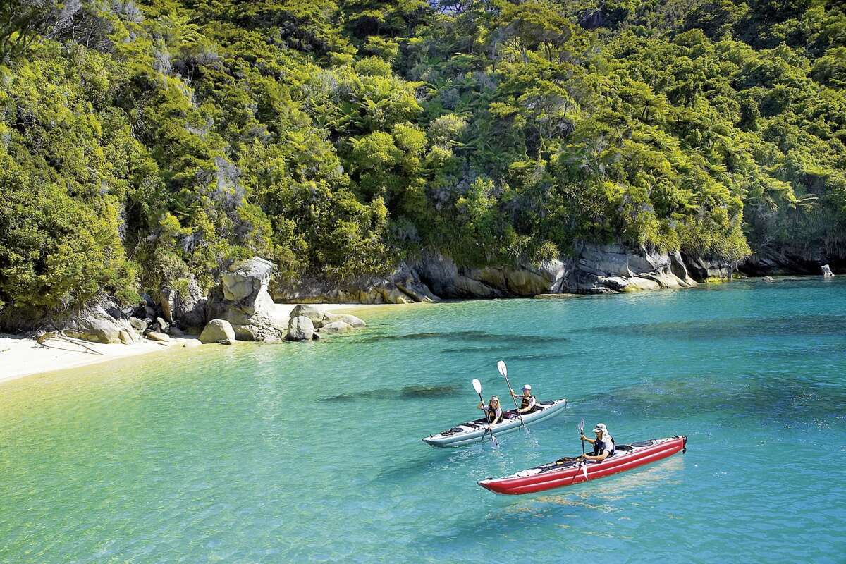 (Di) Ausflug zum Abel Tasman Nationalpark im Nordwesten der Südinsel und dort zweistündige, geführte Kayak-Tour. An Land laden gut geebnete Pfade zu einem Spaziergang unter baumhohen Farnen ein. Ca. 130 km (F, M)