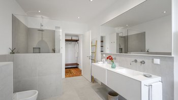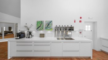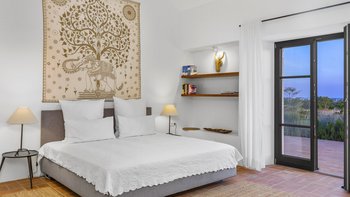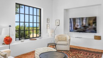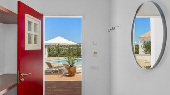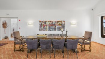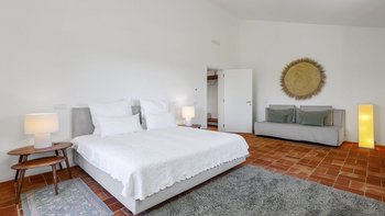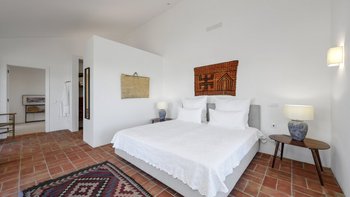 Stilvoll, geräumig und hervorragend gelegen, ist Quinta Brisa ein moderner Rückzugsort, der für ein einfaches, elegantes Leben konzipiert wurde. In einer ruhigen Landschaft etwas außerhalb von Albufeira gelegen, verbindet diese beeindruckende Villa moderne Architektur mit einer ruhigen Umgebung, ideal für Familien oder Gruppen, die sowohl Entspannung und auch einfachen Zugang zu den Highlights der Algarve suchen. Im Inneren ist die Villa hell und wunderschön eingerichtet, mit einem großen offenen Wohn- und Essbereich mit Kamin, modernen eklektischen Mid-Century-Möbeln und einer eleganten Küche mit hochwertigen Geräten und einem ungezwungenen Essbereich. Jedes der fünf Schlafzimmer mit eigenem Bad öffnet sich auf eine Gemeinschaftsterrasse mit herrlichem Blick auf die umliegende Landschaft, ideal für ruhige Morgen oder Abende zum Entspannen. Im Freien erstreckt sich die Terrasse nach Süden zum Meer und nach Norden rund um den Poolbereich und bietet eine Vielzahl von Bereichen zum Essen und Entspannen. Der private Pool ist von Liegestühlen und schattigen Sitzgelegenheiten umgeben, während ein eingebauter Grill und ein frischer Essbereich im Freien das Leben im Freien einfach und angenehm machen.
