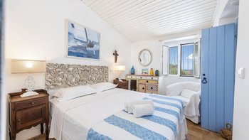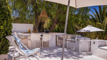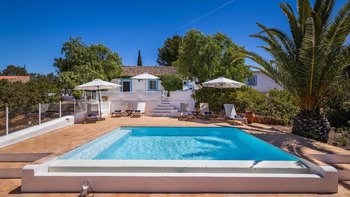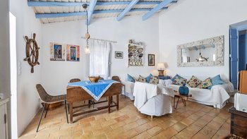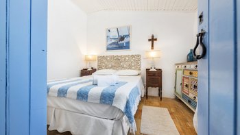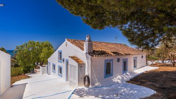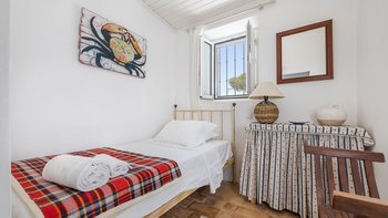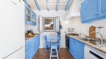 Von den bemalten Dachsparren bis zu den kühlen Fliesenböden vermittelt diese luftige kleine Villa ein echtes „Strandhaus“-Feeling. Deren einstöckige Villa ist durchweg mit bezaubernder Einfachheit in einer klaren Farbpalette von Blau und Weiß eingerichtet und verfügt über zwei oder drei Stufen, die die Räume mit Split verbinden. Deren Haus ist ideal für Familien oder Freunde und verfügt über ein Schlafzimmer mit Doppelbett und zwei Einzelbetten sowie ein Schlafzimmer mit Etagenbett, eine Küche im Landhausstil mit modernen Geräten und ein schönes Wohnzimmer, das das Herz des Hauses bildet, mit einem Essbereich, bequemen Sofas und Satellitenfernsehen. Eine Tür öffnet sich von hier auf die sonnige und geräumige Terrasse mit verführerischem Blick auf den Atlantik und die Mündung des Flusses Arade, Liegestühlen, die schläfrig im Schatten der Bäume liegen, und einem großen Esstisch für ein gemütliches Mittagessen oder Abendessen im Sternenlicht.