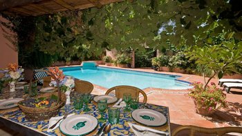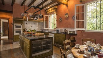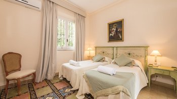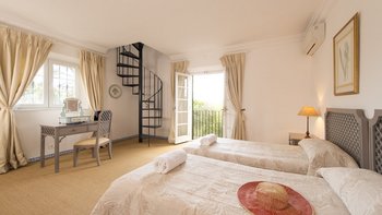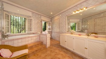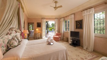 Die massive Holztür, die den Zugang zum Cortijo bewacht, der schattige Innenhof mit seinem zentralen Brunnen und die umliegenden Orangenhaine und halbtropischen Gärten sind alle unverkennbar andalusisch, aber wenn Sie diese herrliche Familienvilla betreten, könnte es sich um ein schönes altes englisches Landhaus handeln. Geräumige Zimmer mit warmen getönten Wänden sind mit Blumen- und Pastelltönen eingerichtet, die Holzbalkenküche harmoniert mit modernem Komfort und ein offener Kamin bildet den Mittelpunkt eines mühelos eleganten Wohnzimmers. Denen Schlafzimmer verteilen sich auf drei Etagen und das Turmhaus, und ein kleines Wohnzimmer kann für größere Familien umgewandelt werden. Der beheizbare Swimmingpool (auf Anfrage) liegt im Grünen und verfügt über einen gut durchdachten Speisesaal auf der Poolterrasse. Geschäfte und Restaurants, Tennis, Segeln und Windsurfen befinden sich in 5 km Entfernung in Sotogrande.