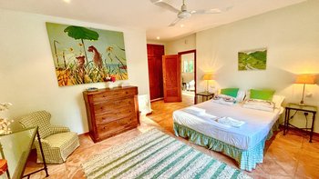 Gepflegte Rasenflächen und anmutige Bäume umgeben diese fröhliche Familienvilla, die ein natürliches Kissen der Privatsphäre bildet und einen einladenden 10-Meter-Pool umrahmt. An einem Ende bietet eine schöne Pergola am Pool einen schattigen Platz für lange und gemütliche Mahlzeiten im Freien. Ans andere Ende befindet sich die Villa selbst, die sich ein paar Stufen über dem Garten erhebt und sich zu einer zweiten Ess- oder Sonnenterrasse öffnet. Einfach eingerichtet, mit einem offenen Wohn-/Esszimmer und drei Schlafzimmern mit eigenem Bad, ist El Laurel sicherlich groß genug, um bequem eine Familie unterzubringen, aber seine intime und ungezwungene Atmosphäre macht es ebenso attraktiv wie ein Hideaway nur für zwei. Es teilt sich ein 3 Hektar großes Grundstück mit der kleineren Villa La Rondita und dem großen Finca la Alameda Haus, wenn es zusammen bestätigt wird. Wird es zusammen mit einem (oder beiden) von diesen gebucht, ist es eine gute Wahl für zwei Familien oder eine Gruppe von Freunden, die zusammen Urlaub machen, und der Kochservice könnte das Sahnehäubchen auf dem Kuchen sein. Ländlich, aber nicht abgelegen, ist die Villa nur 5 km von Ronda entfernt.