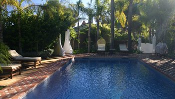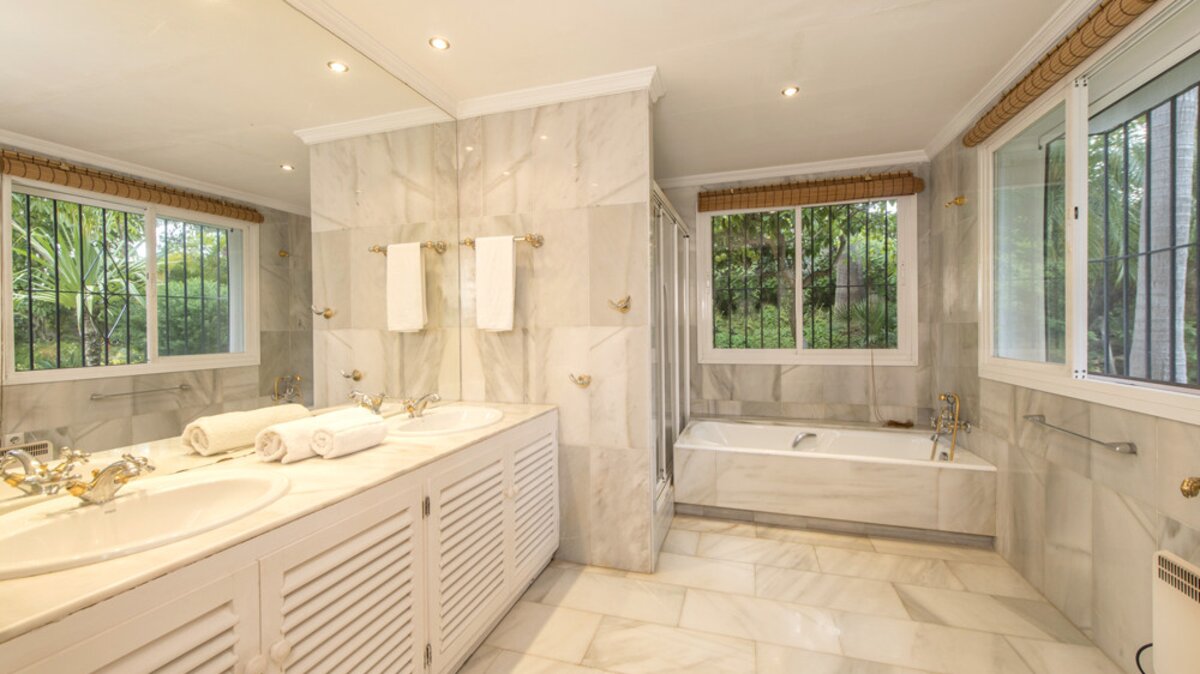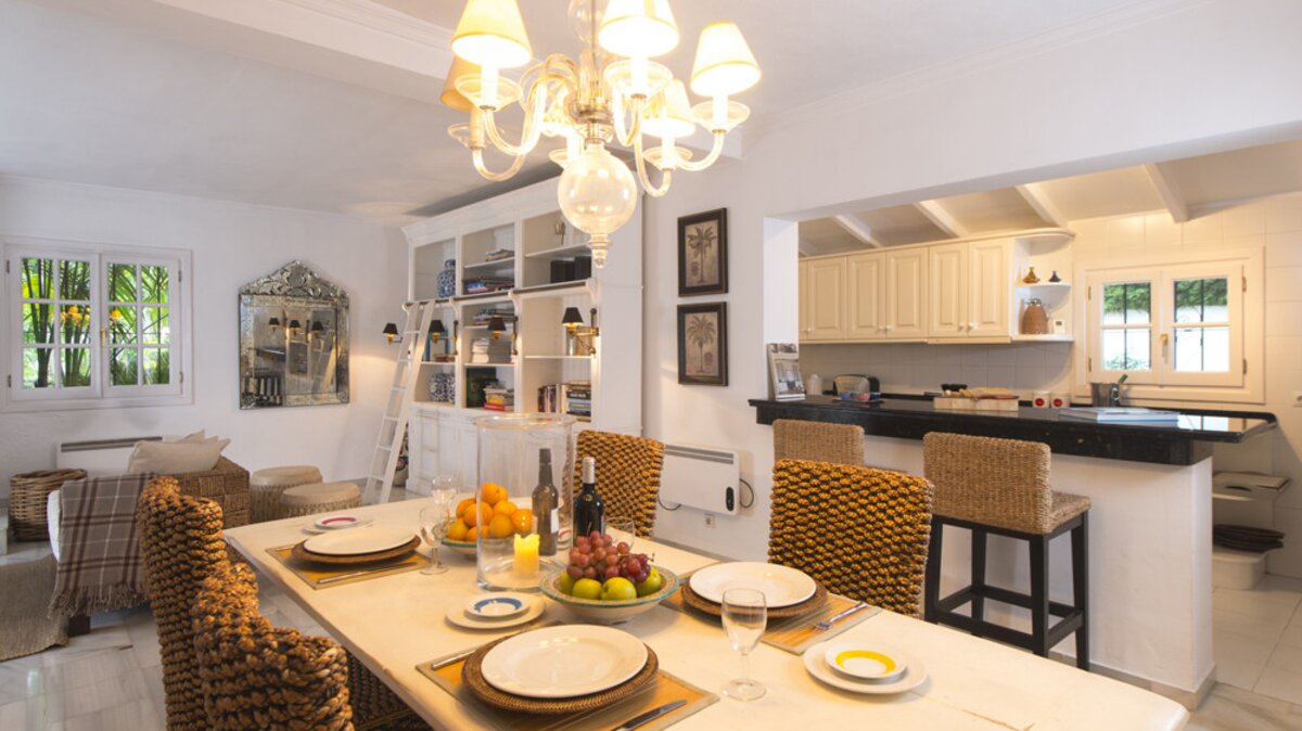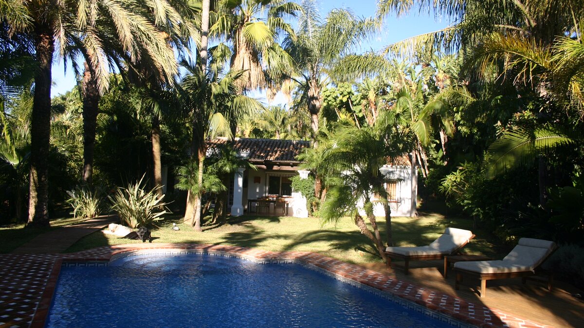 Die gepflegten Gärten von La Palmita bieten ein Gefühl der Privatsphäre, aber dieses Haus ist ideal gelegen, nur 1,5 km vom Strand von Nueva Andalucia und weniger als 2 km vom berüchtigten Puerto Banús entfernt.