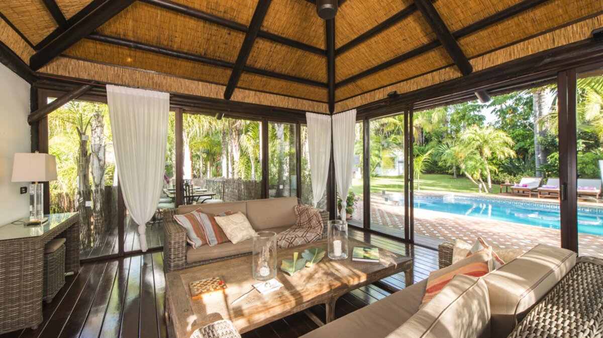 Ein charmantes Anwesen für vier oder ein romantischer Rückzugsort für zwei, La Palmita ist ein wunderschönes Haus mit einladenden tropischen Gärten. Des Innere der Villa ist hell, komfortabel und geschmackvoll eingerichtet, mit kühlen Marmorböden. Denen Unterkünfte befinden sich alle auf einer Ebene und umfassen einen offenen Wohn- und Essbereich mit einer gut ausgestatteten Küche und einer Frühstücksbar. Zwei geräumige Schlafzimmer verfügen über eine wunderschöne Master-Suite mit Himmelbett und Marmordusche en suite und ein Zweibett-Schlafzimmer mit eigenem Bad. Im Sommeranbau befindet sich ein fantastischer Fitnessraum mit raumhohen Fenstern mit Blick auf die Gärten, während im Nebengebäude am Pool ein komfortables Sommerwohnzimmer neben einem Essbereich im Freien zu finden ist. In der Mitte der Liegewiese befindet sich ein PRIVATER POOL mit Holzliegen und Sonnenschirmen zum schattigen Baden.