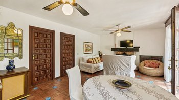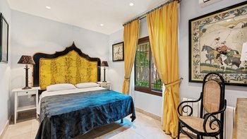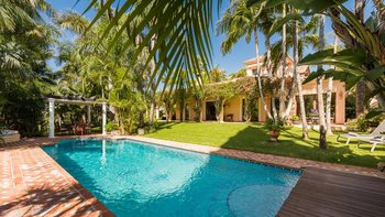 Die Master Suite ist eine herrlich geräumige Oase mit einem Himmelbett und einem versenkten Jacuzzi, und zwei weitere Schlafzimmer im Haupthaus werden durch eine separate, in sich geschlossene Casita ergänzt. Es gibt auch ein neu gebautes Nebengebäude mit einem fünften Schlafzimmer, eigenem Bad und separatem Eingang, was dies zu einer fabelhaften Wahl für Familien oder Freunde macht. Eine große Auswahl an Geschäften, Restaurants, Bars und der Strand sind alle leicht zu Fuß erreichbar.