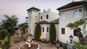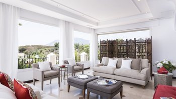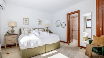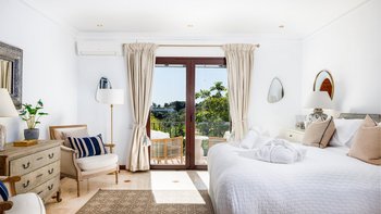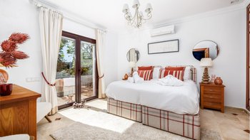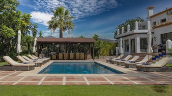In der Nähe des lebhaften Marbella, der Restaurants von Estepona und des Segelparadieses Puerto Banús liegt diese gut platzierte Villa ruhig an Hängen mit Meerblick, nur 2 km vom Strand Los Granados entfernt. Deren Haus ist von abgestuften Gärten umgeben und umfasst geflieste und bepflanzte Innenhöfe, Rasenflächen mit hohen Palmen, den mit Sonnenschirmen und Liegestühlen gesäumten Privater Pool und den stilvoll eingerichteten Pavillon am Pool, der mit einem Grill serviert wird. Deren elegante Innenräume der Villa Allegria, die sich auf drei Etagen verteilen und durchgehend klimatisiert sind, umfassen fünf schöne Schlafzimmer, zwei Doppel- und drei Zweibett-Zimmer, jedes mit eigenem Bad und alle bis auf eines mit Zugang zu einer Terrasse oder einem privaten Patio. Die Küche, das Esszimmer und das sehr geräumige Wohnzimmer befinden sich auf der mittleren Ebene und werden im Untergeschoss durch ein freundlich eingerichtetes Spielzimmer mit TV, Billardtisch und Tischfußball ergänzt. Außerdem gibt es eine Küchenzeile und ein Duschbad. Im Untergeschoss befindet sich ein ausziehbares Bett, das Platz für zwei zusätzliche Kinder unter 12 Jahren bietet.