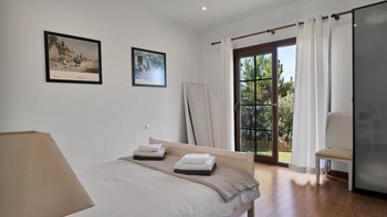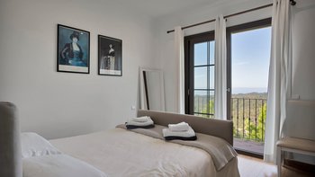 Das Innere der Unterkunft erstreckt sich über zwei Etagen und die Klimaanlage befindet sich im gesamten Gebäude. Deren Unterkunft verfügt über fünf schöne Schlafzimmer, von denen zwei auch als Zweibett- oder Doppelzimmer eingerichtet werden können, jedes mit eigenem Bad, und alle mit Blick auf das Tal und das Meer und dahinter.