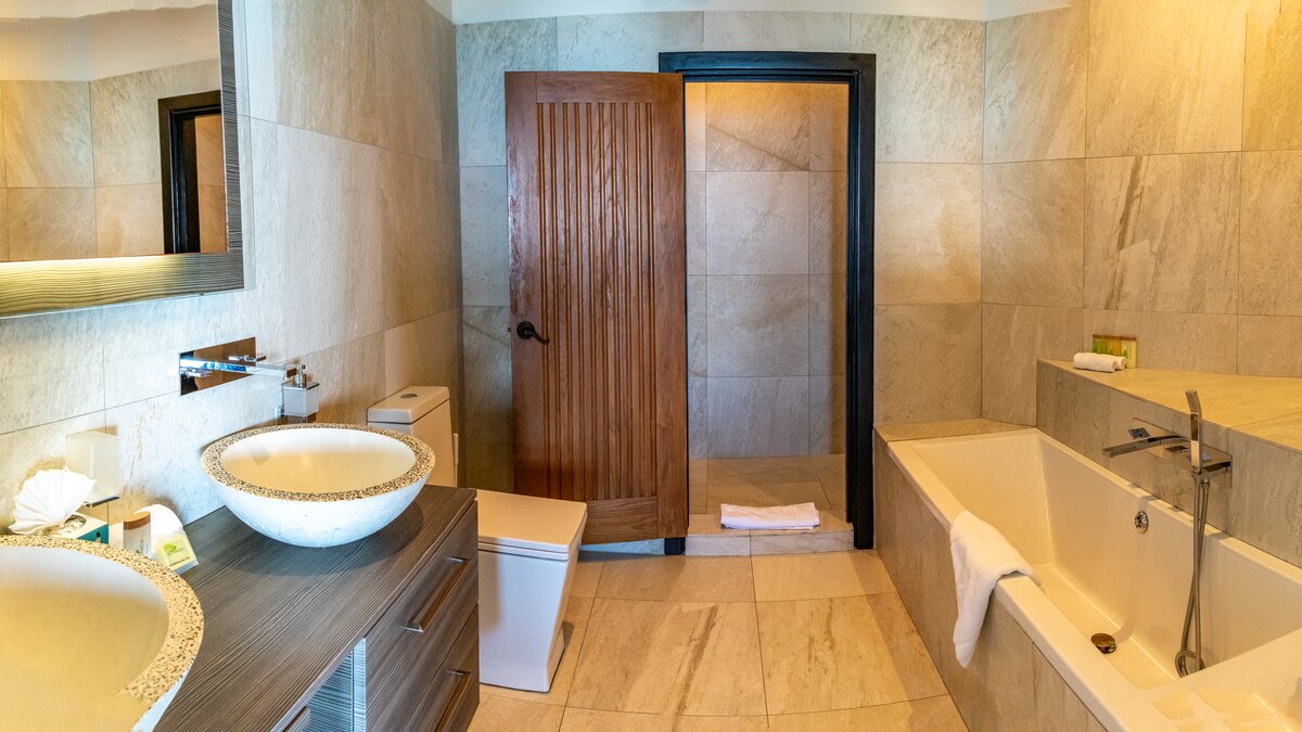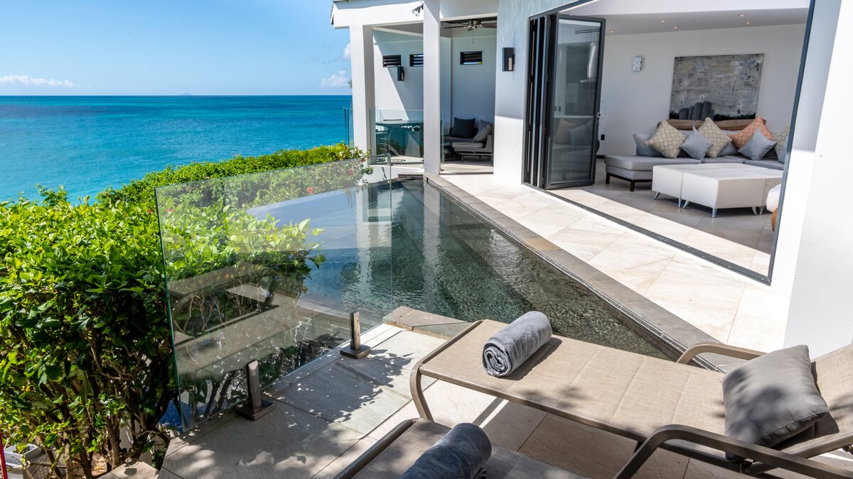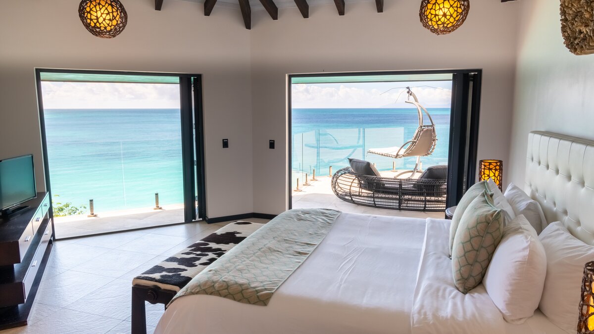 Im Inneren finden die Gäste ein wunderschön gestaltetes Interieur vor, das Komfort mit Stil verbindet. Deren Villa verfügt über zwei geräumige Schlafzimmer mit eigenem Bad, eines mit einem Kingsize-Bett und das andere mit zwei Einzelbetten, die jeweils einen eigenen Balkon mit Blick auf das Meer bieten. Der offene Grundriss Wohnbereich ist ideal für Entspannung und Unterhaltung, ausgestattet mit modernen Annehmlichkeiten, während die voll ausgestattete Küche alle kulinarischen Bedürfnisse erfüllt.