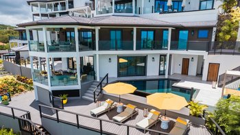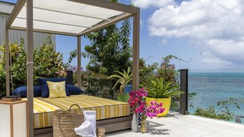 Im Außenbereich bietet die riesige, umlaufende Terrasse viel Platz für Entspannung und Unterhaltung und verfügt über einen Infinity-Pool, wo die Gäste die karibische Sonne tanken können. Entspannen Sie auf dem Doppel-Tagesbett in der überdachten Außenlounge oder speisen Sie im Freien im Speisesaal, der mit einer voll ausgestatteten Grillküche ausgestattet ist. Für diejenigen, die einen direkten Zugang zum Strand suchen, gibt es eine eigene Promenade, die zu dem weichen Sand und dem kristallklaren Wasser führt.