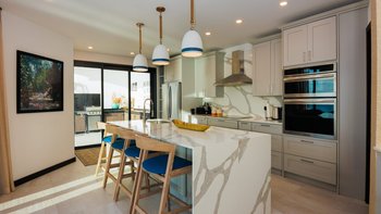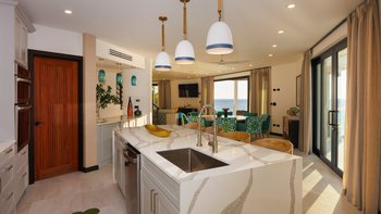 Im Inneren finden die Gäste eine Oase mit anspruchsvollem Design und modernen Annehmlichkeiten. Der weitläufige Wohnbereich verfügt über einen schön eingerichteten Wohn- und Essbereich, der sich perfekt zum Entspannen oder Unterhalten eignet. Deren voll ausgestattete, offene Grundriss Küche verfügt über eine Frühstückstheke, so dass es ein Vergnügen ist, Mahlzeiten zuzubereiten.
