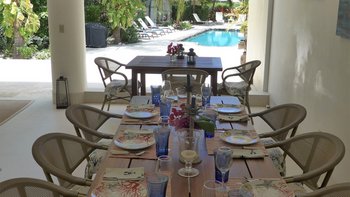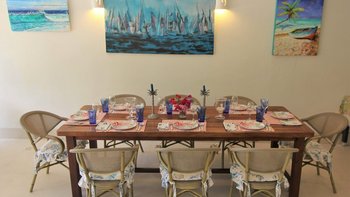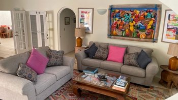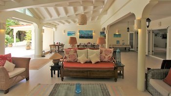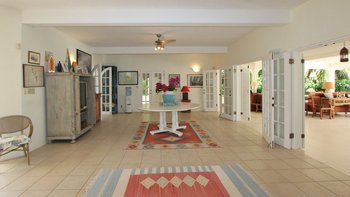 Betreten Sie den unglaublich geräumigen, offenen Grundriss Wohn-Ess- und Küchenbereich mit hohen Decken. Deren Küche ist wunderschön blau gestrichen und passt perfekt zu den traditionellen Innenräumen im Kolonialstil, während der Wohn- und Essbereich über einen offenen Torbogen auf den Poolbereich hinausgeht, der viel Tageslicht und frische Luft bietet. Darüber hinaus gibt es eine TV-Lounge und einen Medienraum für diejenigen, die eine gemütliche Atmosphäre suchen. Drei Doppelschlafzimmer, alle mit Dusche en suite, befinden sich im Erdgeschoss, mit französischen Türen, die direkten Zugang zur Poolterrasse bieten.
