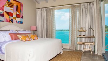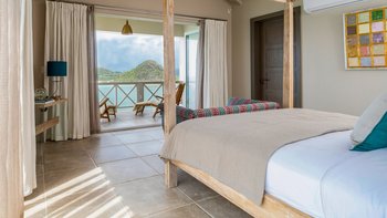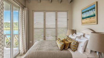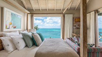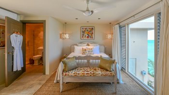 Im zweiten Stock befindet sich das Hauptschlafzimmer. Dieses Zimmer ist das Hinguckerstück, mit einem Sitzbalkon, einem Ankleidezimmer und einem eigenen Bad mit freistehendem Silberbad, das sorgfältig vor verschlossenen französischen Türen platziert ist und einen Blick auf die Boote im kristallklaren Ozean bietet. Zwei Doppelschlafzimmer befinden sich ebenfalls auf dieser Etage mit Dusche en suite und Terrasse.