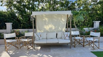 Im Außenbereich können die Gäste den privaten Pool und zwei Außenbereiche nutzen; einer für das Mittagessen am Meer, der andere für das Abendessen unter der Veranda.