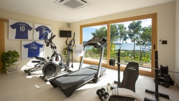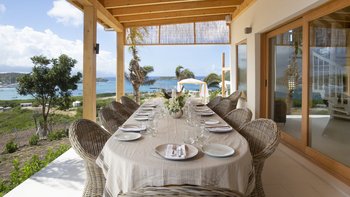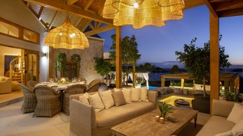 Das Herzstück des Hauses ist die weitläufige Terrasse. Hier finden Sie einen atemberaubenden versunkenen Loungebereich, einen Holzofen für Abendessen und einen Infinity-Pool, der mit dem azurblauen Wasser des Hafens zu verschmelzen scheint. Für diejenigen, die einen Wellness-Ausflug suchen, gibt es auf der unteren Ebene einen privaten Fitnessraum und eine Sauna, während die Schlafzimmeraufteilung, Split auf das Haupthaus und zwei charmante Cottages, eine ideale Balance aus Zweisamkeit und Privatsphäre für Familien mit mehreren Generationen bietet.