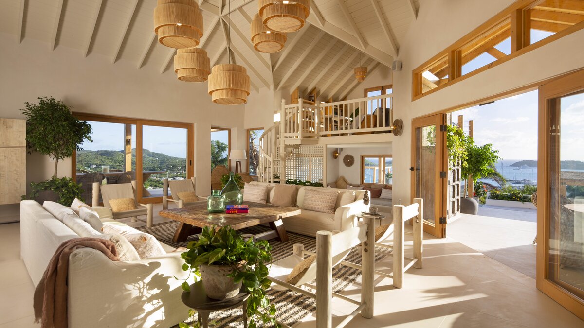 Dieser Rückzugsort eines ehemaligen Musikproduzenten ist eine Meisterklasse im modernen karibischen Leben und bietet Panoramablick auf den Hafen, kreative Seele und nahtlose Innen- und Außenbereiche für große Gruppen.