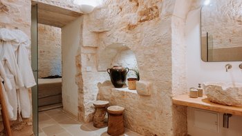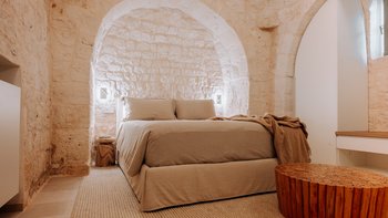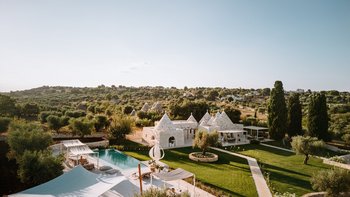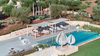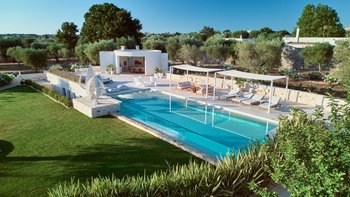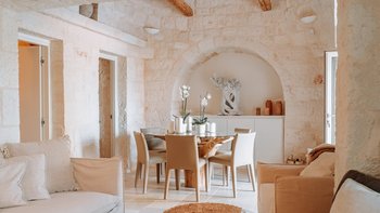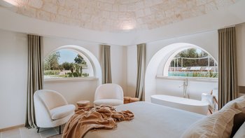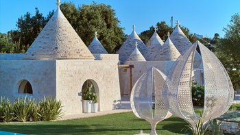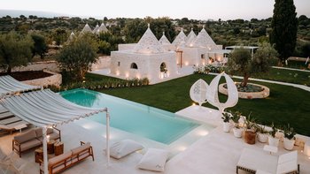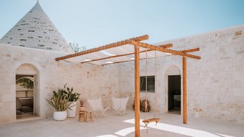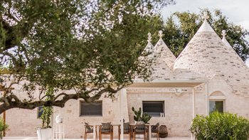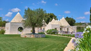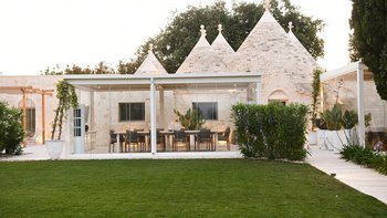 Das Dimora Pomona ist eine wunderschöne Trullo-Villa in der Nähe von Cisternino und Locorotondo mit außergewöhnlichen Wohnbereichen im Freien und modernem Dekor.
