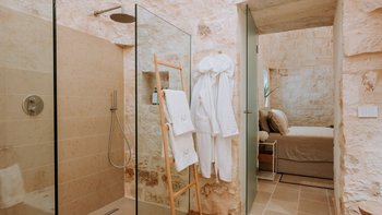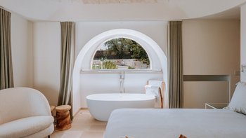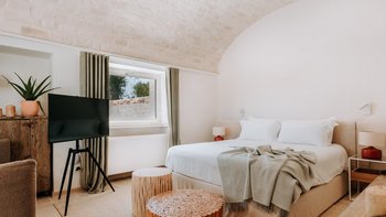 Dimora Pomona ist ein bezauberndes Trullo-Anwesen in hübschem Apulien. Denen Innenräume sind mit schickem, modernem Dekor eingerichtet, gepaart mit hellen, weiß getünchten Ziegelwänden. Im Inneren finden die Gäste ein schönes Wohnzimmer, das in neutralen Farbtönen gehalten ist. Der Essbereich ist ähnlich gestaltet und verfügt über einen eleganten runden Tisch mit Blick auf den Pool und die Gärten und Gärten. Dieser Villa verfügt über vier Doppelschlafzimmer. Jedes mit einem Kingsize-Bett und einem Duschraum und en suite für ein luxuriöses Gefühl.