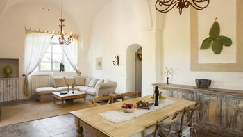 Das Fico d’India, eine sehr attraktive Kombination aus traditioneller Architektur und modernem Design, befindet sich in sehr privater ländlicher Lage inmitten alter Olivenbäume, nur eine kurze Autofahrt (oder Fahrradfahrt) von herrlichen Sandstränden mit guten Beachclubs entfernt. Deren Villa öffnet sich in einen hellen und OFFENER GRUNDRISS Raum mit originalen Gewölbedecken und einem Sitzbereich auf der linken Seite und einer Küche mit Essecke auf der rechten Seite, die in einem raffinierten neutralen Farbschema mit natürlichen Materialien eingerichtet ist. Ein zweiter Wohn-/TV-Bereich verfügt über ein Tagesbett, das bei Bedarf als zusätzlicher Schlafbereich genutzt werden kann, zusätzlich zu den drei Doppelzimmern. Eines der beiden Schlafzimmer im Hauptteil der Villa verfügt über ein eigenes Duschbad und das zweite Schlafzimmer und der Wohnbereich nutzen das zweite Duschbad. Ein weiteres Schlafzimmer mit Dusche en suite ist von außen zugänglich und bietet zusätzliche Privatsphäre. Draußen gibt es eine weitläufige überdachte Terrasse mit Essbereich und komfortablen weichen Sitzgelegenheiten, während ein Holzsteg von der Villa zum beeindruckenden 12m undm privatem Privater Pool ist. Deren Villa befindet sich in einer hervorragenden Lage – nur 400m von einem hervorragenden kleinen Restaurant Il Cortiletto, ein ausgezeichnetes Delikatessengeschäft und ein Metzger, der eine umfassende Auswahl an lokalen Spezialitäten, Weine und Speisen zum Mitnehmen und. Lokale Beachclubs am Sandstrand und die stimmungsvollen Marktstädte Ostuni, Cisternino und Ceglie Messapica sind bequem mit dem Auto zu erreichen.