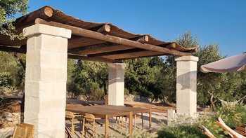 Die weitläufigen Gärten des Anwesens sind ein wahres Highlight, mit mehr als einhundert alten Olivenbäumen, Mandelbäumen, Granatapfelbäumen und aromatischen Kräutern wie Salbei, Rosmarin und Lavendel. Denen Terrassenlandschaft bietet eine malerische Kulisse für gemütliche Spaziergänge oder ruhige Besinnung. An der Spitze des Anwesens können die Gäste im Infinity-Pool entspannen, im Whirlpool baden oder sich in der Sauna erholen; alles perfekt positioniert, um den weiten Blick auf die umliegende Landschaft zu genießen. Schattige Pavillons und ruhige Roccia-Bereiche laden zum Entspannen, Essen im Freien oder einfach nur zum Entspannen in der friedlichen Atmosphäre dieses einzigartigen Anwesens ein.
