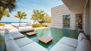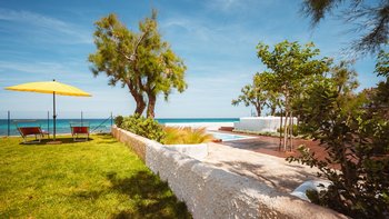 Im Inneren erwartet die Gäste sofort ein Ambiente von anspruchsvoller Pracht und Modernität. Dessen helle und luftige OFFENER GRUNDRISS Wohnzimmer sorgt für natürliches Licht, um den Raum wahrhaftig zu beherrschen. Von der Küche bis zu den fünf sorgfältig eingerichteten Schlafzimmern, die jeweils mit eigenem Bad ausgestattet sind, spiegelt jeder Aspekt der Villa Marincanto das unerschütterliche Engagement wider, Reisenden, die eine erholsame Oase an der Küste suchen, ein einzigartiges Erlebnis zu bieten. Viele der Innenfarben und Designelemente greifen direkt auf die lokale Landschaft zurück und betonen die Schönheit der pulsierenden Küste Apuliens.