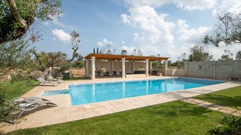 Eine sehr familienfreundliche Villa in Apulien, diese sehr komfortable Villa liegt inmitten privater Olivenhaine, mit einer tollen neuen Loggia im Garten mit Blick auf den Pool und die Olivenhaine. In der Nähe von Sandstränden und preiswerten Restaurants.