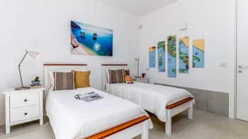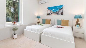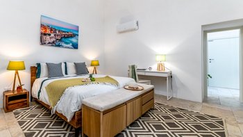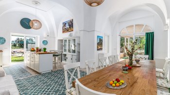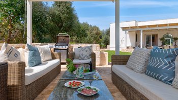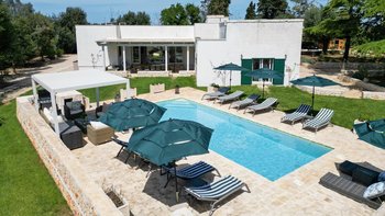 Masseria Annabella ist ein wunderschön restauriertes apulisches Refugium, nur 9 km von der berühmten weißen Bergstadt Ostuni entfernt, wo sich modernes Design nahtlos mit großzügigen Wohnräumen und familienfreundlichem Komfort verbindet. Deren Villa wurde speziell für größere Gruppen und mehrere Generationen entworfen und bietet bequem Platz für bis zu 12 Gäste in sechs attraktiven Schlafzimmern, darunter drei besonders geräumige Doppelzimmer, die sich ideal für Eltern oder Großeltern eignen, die zusätzlichen Komfort wünschen. Des Herzstück der Villa ist eine große, voll ausgestattete Küche mit einem entspannten Sitzbereich, ideal für geselliges Kochen und gemeinsame Mahlzeiten, während ein separates Wohnzimmer einen ruhigen Ort zum Entspannen bietet. Für die jüngeren Gäste gibt es ein eigenes Kinderspielzimmer, während ein Spielbereich und Fitnessgeräte zu jeder Jahreszeit Unterhaltung für Jung und Alt bieten.