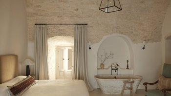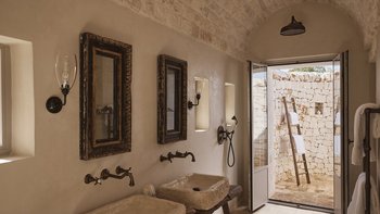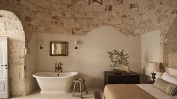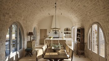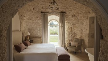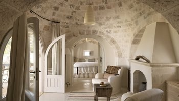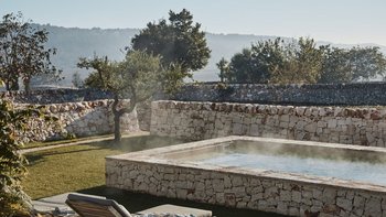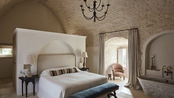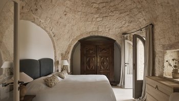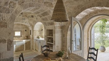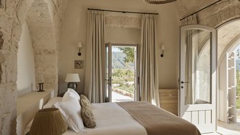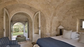 Wenn Sie die Masseria betreten, werden Sie sofort ein Gefühl der Glückseligkeit erleben. Dessen elegantes, traditionelles Steinfundament der Villa wirkt im Einklang mit der Fülle von natürlichem Licht, das durch das gesamte Anwesen fließt, um eine ruhige und behagliche Atmosphäre für die Gäste zu schaffen. Der Speisesaal im Innenbereich und die professionelle Küche laden zum Verwöhnen der Sinne ein und sind der perfekte Ort, um Geschichten zu teilen, Erinnerungen zu schaffen und einige unglaubliche lokale Gerichte zu genießen, die von Spitzenköchen im Haus zubereitet werden. Jedes der zehn Schlafzimmer mit eigenem Bad ist mit erstklassigem Komfort und charmanter Dekoration ausgestattet, wobei mehrere Zimmer auf die Terrasse hinausgehen, um das luftige Gefühl, das diese Villa so mühelos verkörpert, noch einmal zu wiederholen.
