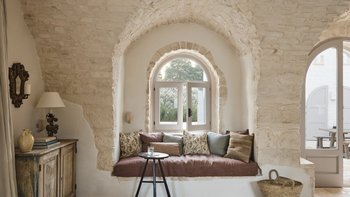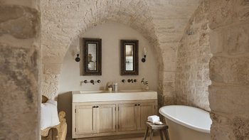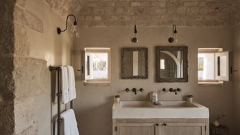 Die um 1750 erbaute Masseria Giardini ist ein charmantes Bauernhaus mit zehn Schlafzimmern in Apulien, das kürzlich renoviert wurde, um eine stilvolle, moderne Einrichtung zu integrieren, die jeder Ecke der Villa Leben einhaucht.