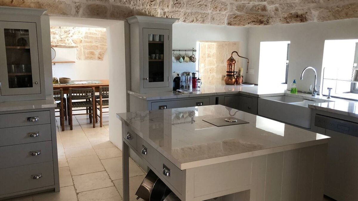 Diese stilvolle Villa ist ein ruhiger Rückzugsort aus dem 18. Jahrhundert im Herzen Apuliens und verfügt über fünf Schlafzimmer mit eigenem Bad, einen Salzwasserpool, Panoramaterrassen und eine Außenküche.